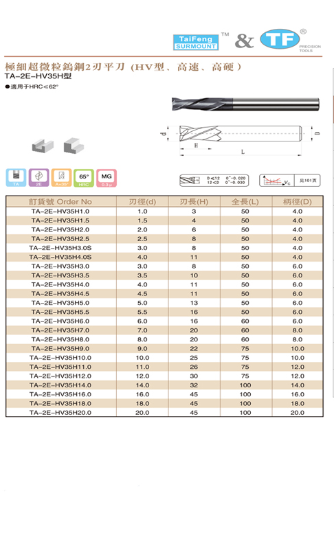 商品名称:极细超微粒钨钢2刃平刀(HV型)