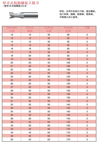 商品名称:106焊刃式钨钢螺旋立銑刀