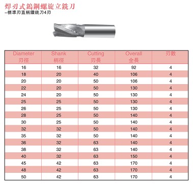 商品名称:107焊刃式钨钢螺旋立銑刀