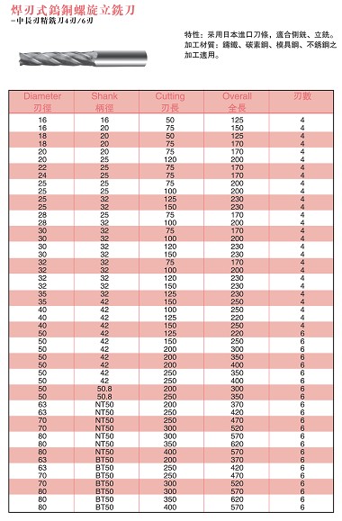 商品名称:108焊刃式钨钢螺旋立銑刀