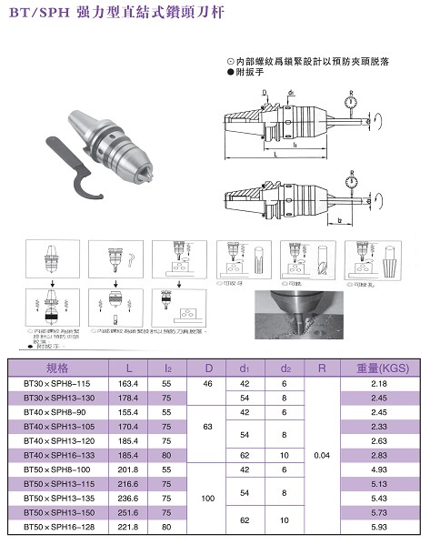 商品名称:189 BT/SPH强力型直结式钻头刀桿