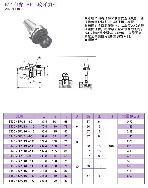 190 BT伸缩ER攻牙刀桿